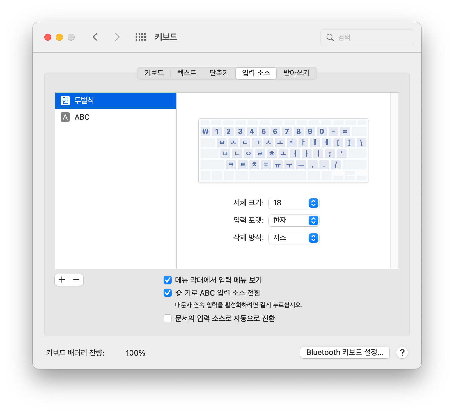 한글, 영어 알파벳이 아닌 이상에야 같은 키임에도 입력소스에 따라 다른 문자가 입력 된다는 것은 무척 헷갈리는 일이다. 이건 솔직히 키보드 설정에서 바꿀 수 있어야 한다고 생각한다. (듣고 있나 애플?)