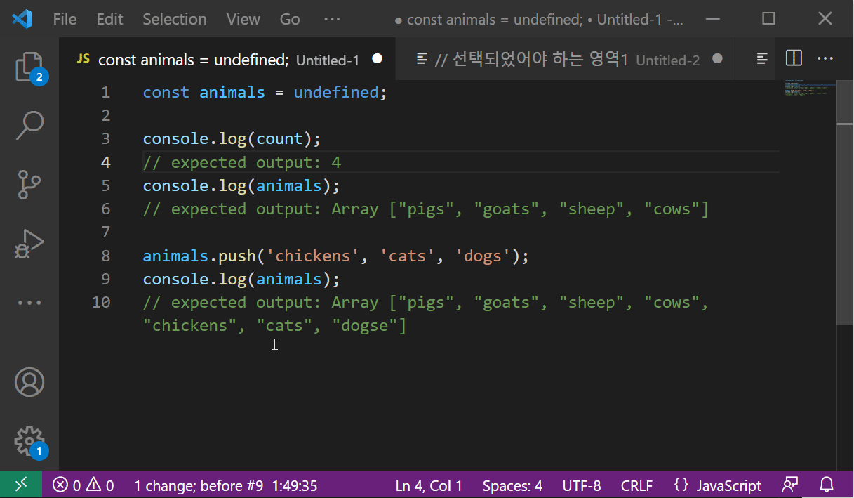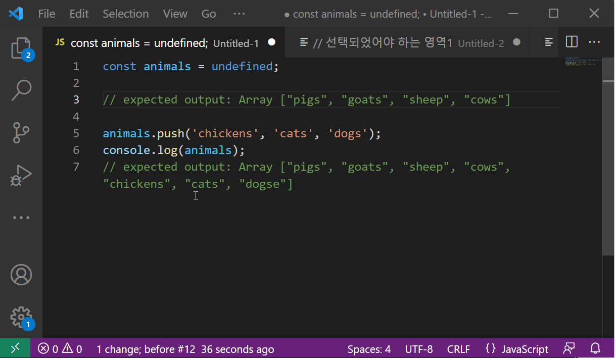 - 복사된 문장들은 커서 윗줄에 붙여넣어진다.