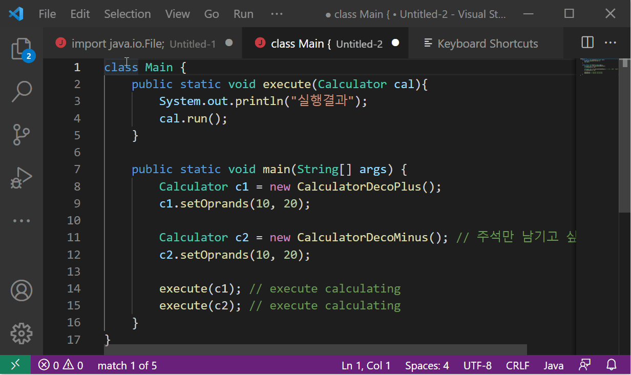 다음 코드에서 나타나는 'execute' 를 'run' 으로 변경해야한다고 하자. 단, 주석에 포함되어있는 execute 는 그대로 두어야 하는 상황이라고 하자. 모든 execute 를 run 으로 바꾸어야 한다면 보통 에디터의 '찾아 바꾸기' 기능을 사용하면 그만이지만, 이 경우는, 대상의 속성에 따라서 대상을 바꾸어야 하는지 바꾸지 않아야 하는지 결정해주어야 한다. 그런 경우 이전 포스팅에서 살펴봤던 '찾기' 기능을 활용하여 다음 스크린샷과 같이 '스마트하게' 여러 문자열을 일괄적으로 변경할 수 있다. 특히, 동일한 문자열에 대해 일부는 변경해야 하는데, 일부는 그렇지 않을 때 이번 패턴이 도움이 된다.