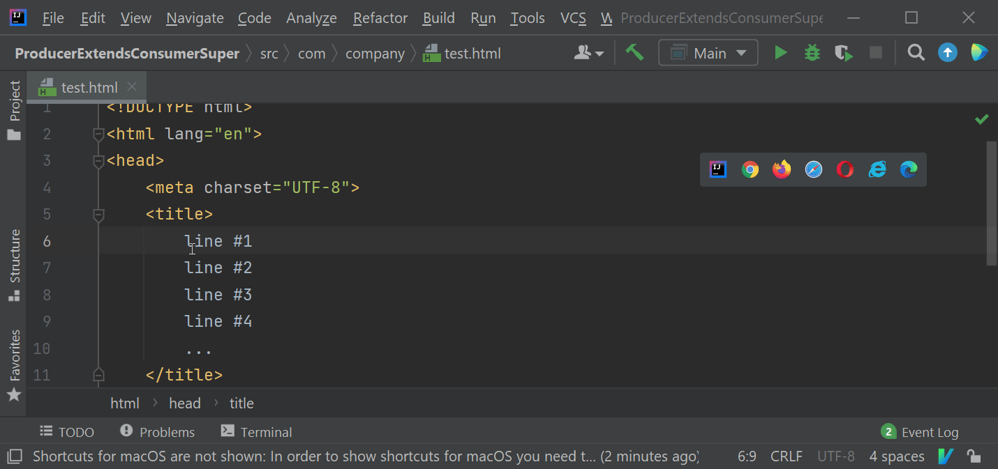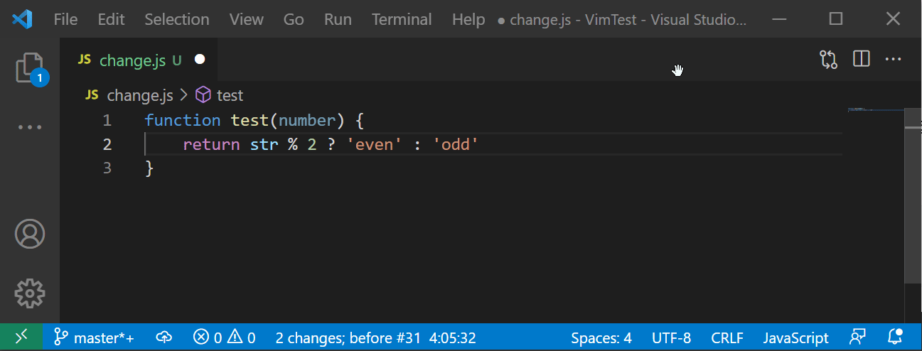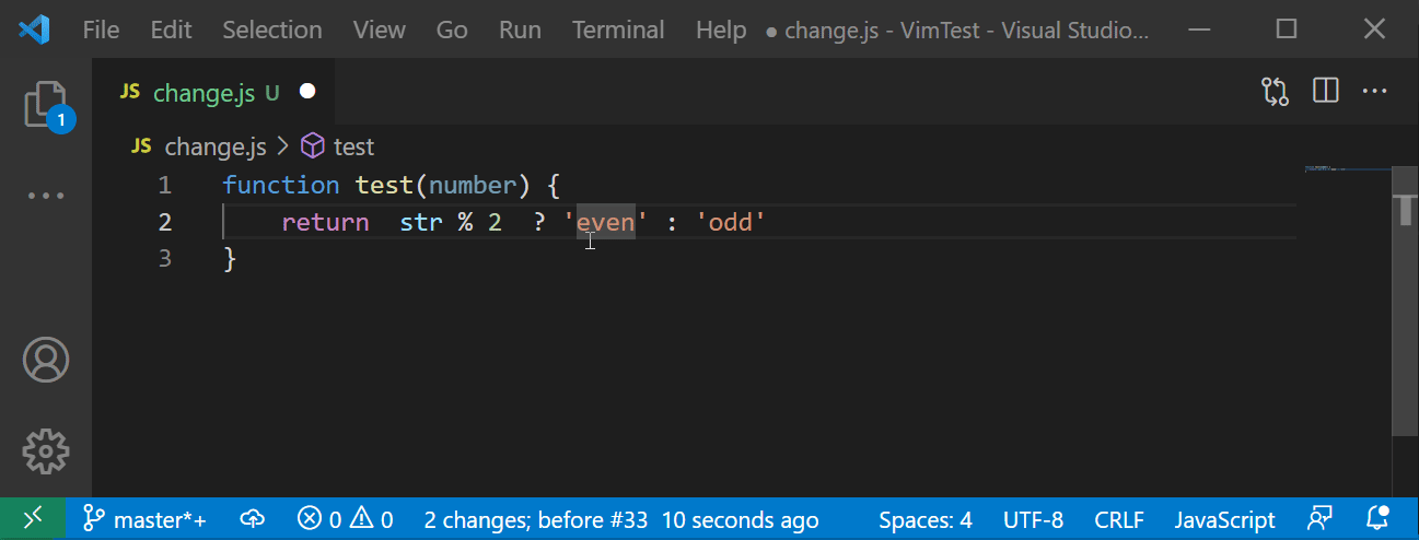 💡 아무래도 이 기능은 VSCode Extension Vim(v1.21.10) 에서는 정상적으로 작동하지 않는 것 같아 보입니다. intelliJ 의 Vim Extension 에서 동작하는 모습으로 대체합니다. 태그 surround 에 관하여는 제 컴퓨터 환경에서 VSCode, IntelliJ, (Original) Vim 모두에서 의도치 않은 동작들을 서로 다른 모습으로 보여주었습니다.
